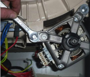 - След това извадете двигателя на пералнята. За да направите това, трябва да развиете няколко болта.